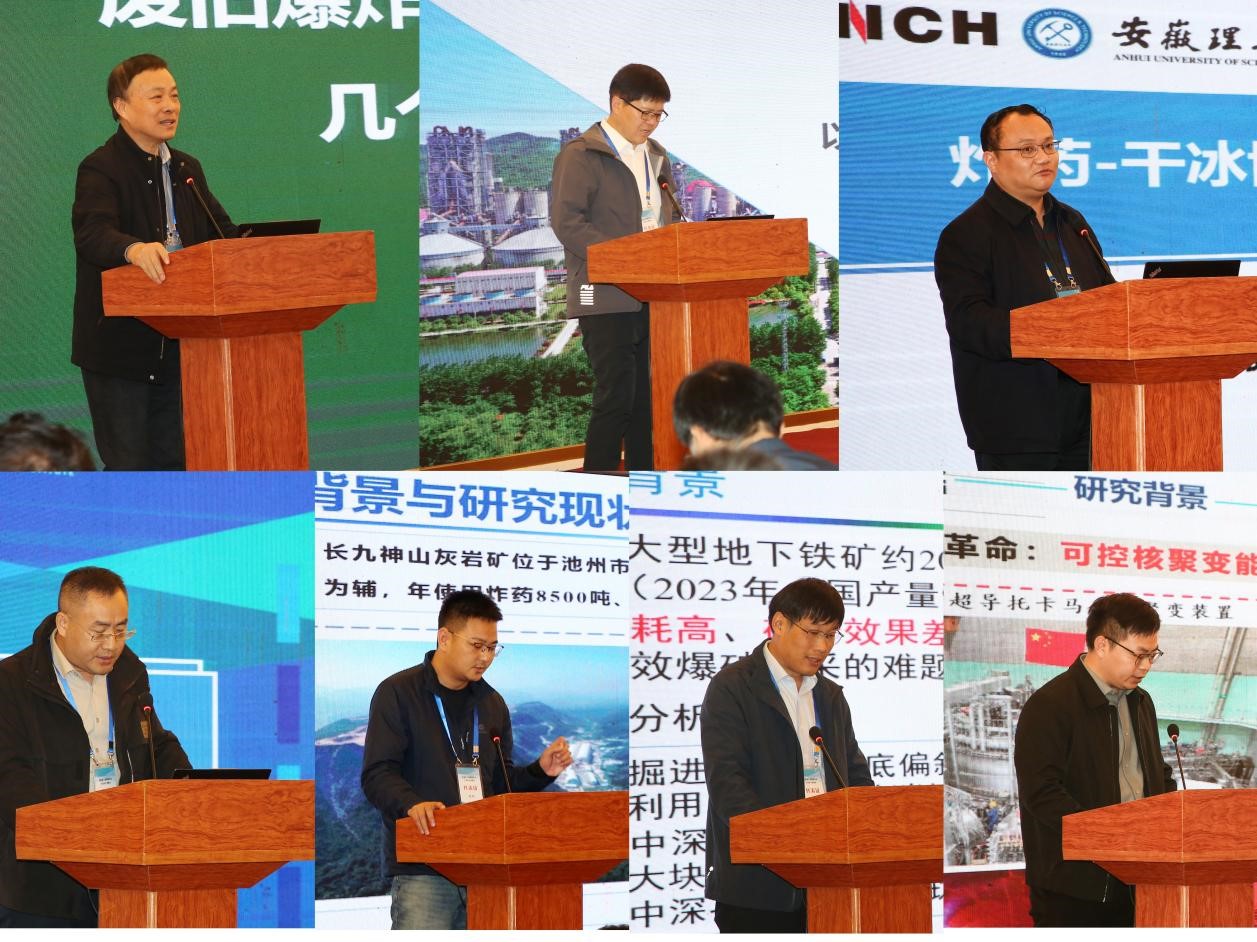 在随后的学术交流环节,中国人民解放军陆军工程大学龙源教授从“废旧爆炸物处置与销毁的几个相关问题”切入,结合长期工作经历向大家介绍了废弃弹药的处理方法和注意事项;安徽海螺集团有限责任公司矿产资源部杜艳春部长介绍了海螺集团在矿车无人驾驶系统方面的建设成效和先进技术;安徽理工大学汪泉教授带来了爆破行业研究前沿“炸药-干冰协同破岩机理及应用研究”的精彩报告;中煤科工集团淮北爆破技术研究院有限公司刘治兵副院长就行业关心的《爆破作业单位资质条件和管理要求》等三项公共安全标准进行了解读;安徽江南爆破工程有限公司副总经理杨翎先生做了“超大型骨料矿精细智能—安全高效爆破技术研究”的报告;马鞍山矿山研究院爆破工程有限责任公司杨海涛高工结合具体案例介绍了“地下矿山难爆矿岩集能爆破技术与应用”的最新成果;中煤科工集团淮北爆破技术研究院有限公司梁汉良博士交流了人造太阳所需核能用CLAM钢复合的先进爆炸焊接技术。七个学术报告都非常精彩,从不同角度带给与会人员先进技术和思想的碰撞。